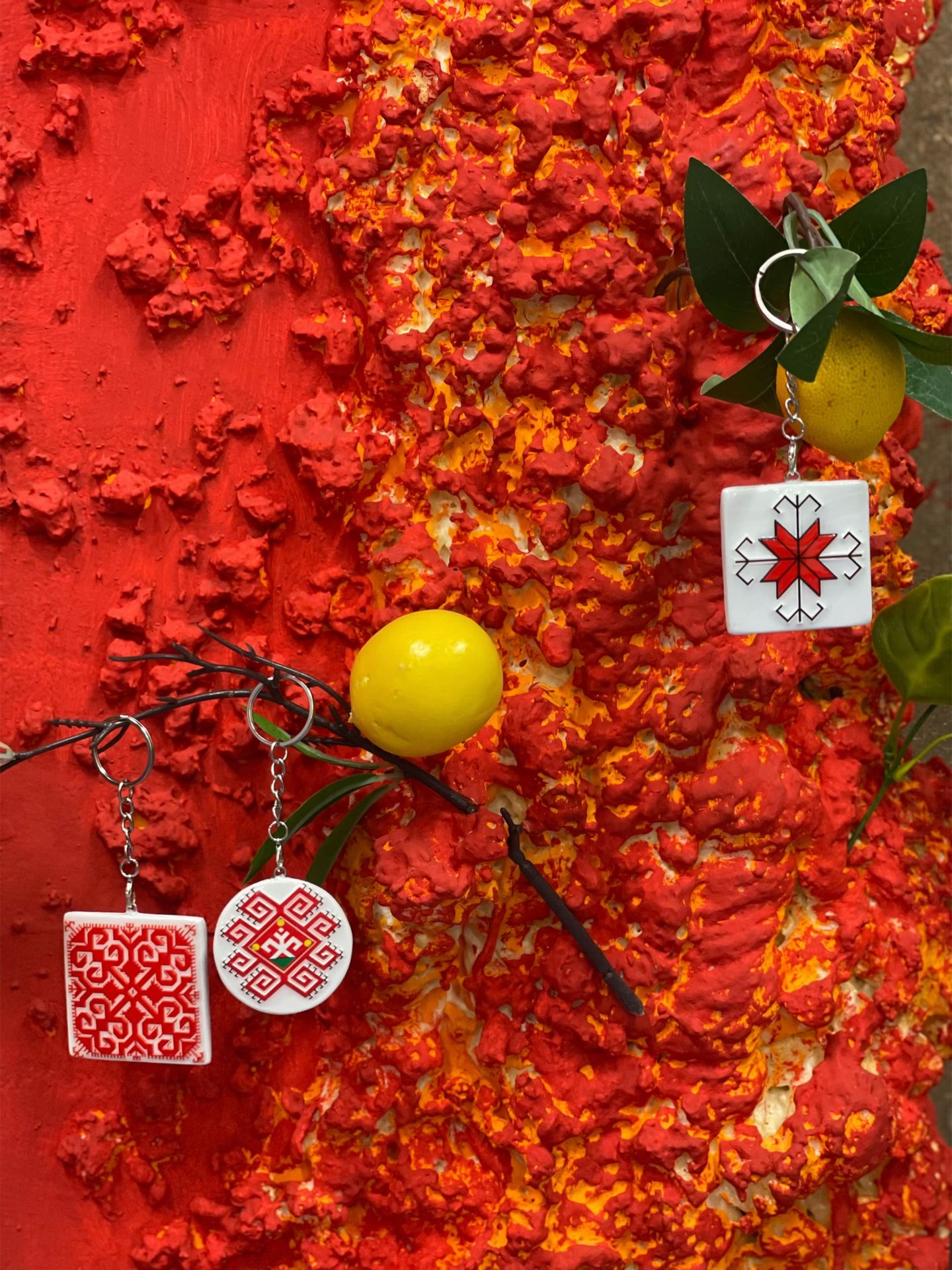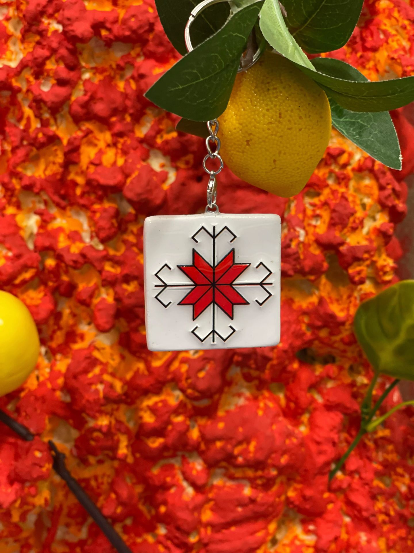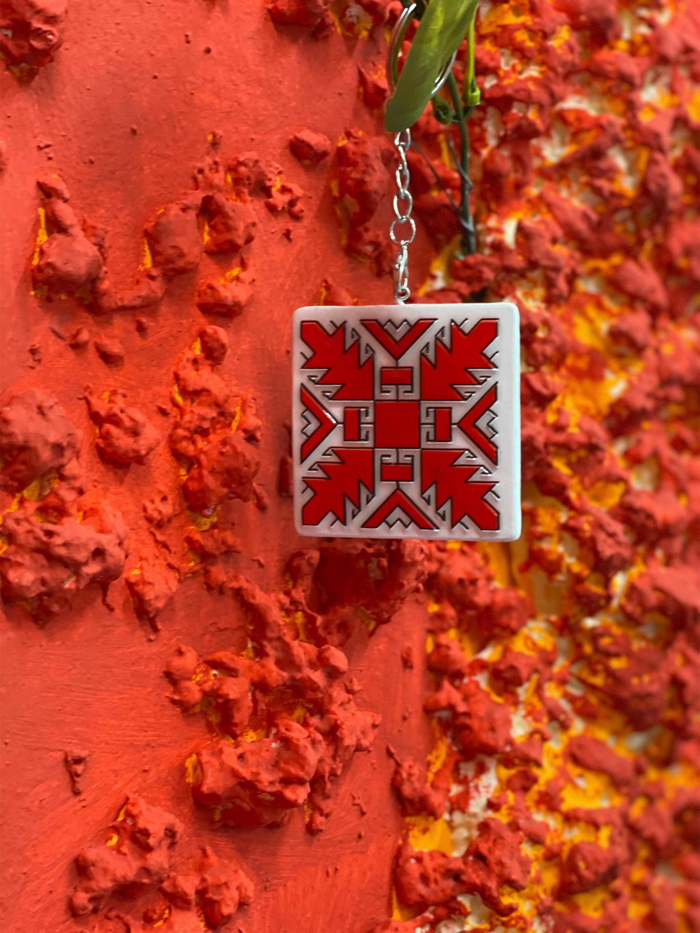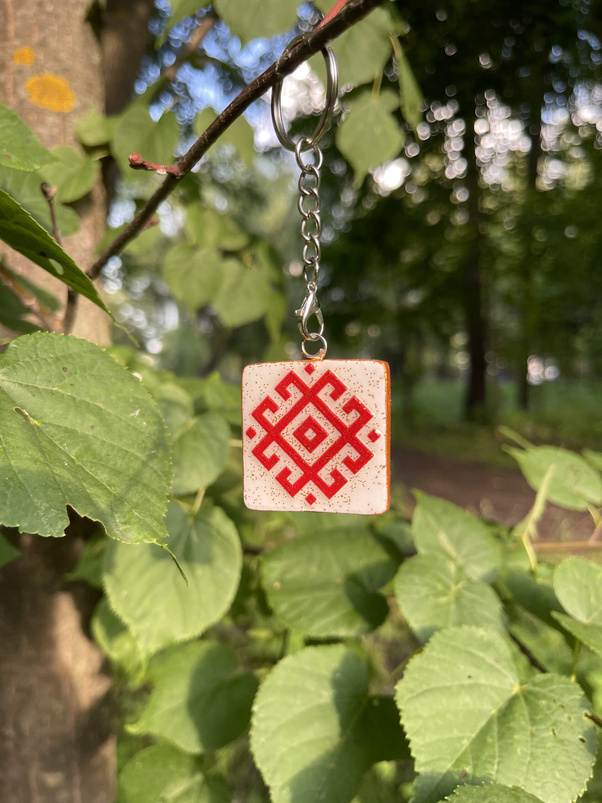 Брелоки на выборъ съ защитнымъ марийскимъ орнаментомъ ручной работы.